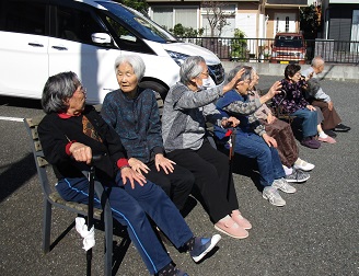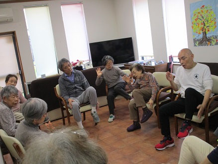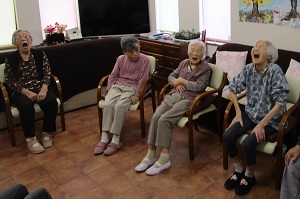 腕の体操や足の体操に加え、今日は顔の体操もやってみました。