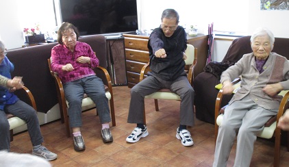レクは午前”ごぼう先生の椅子体操”DVD見ながら