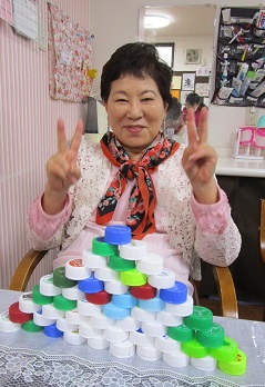 大豆の箸掴み&ペットボトルキャップの積み上げを競いあいました。