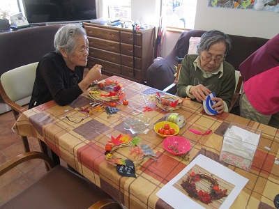 午前はハロウィンのリース作り