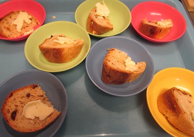 昨日今日はレーズンとアーモンドを練りこんだパンでした。