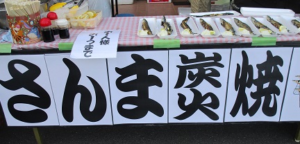 昼食はお客様に協力して頂いた芋煮、秋刀魚を