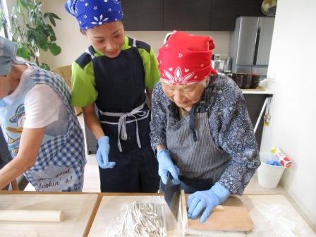 蕎麦担当の方は一生懸命に包丁を持って蕎麦を切りました。