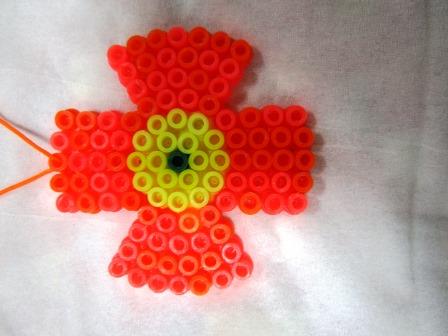 アイロンビーズではお花柄のキーホルダーを作りました。