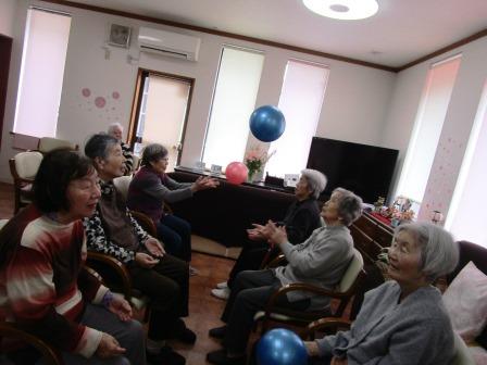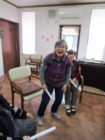 午後は、棒体操でした。「うさぎとかめ」と「どんぐりころころ」を唄いながら、棒でリズムを取りました。