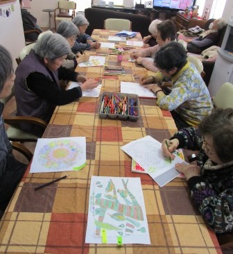 静かにテーブルで色塗り