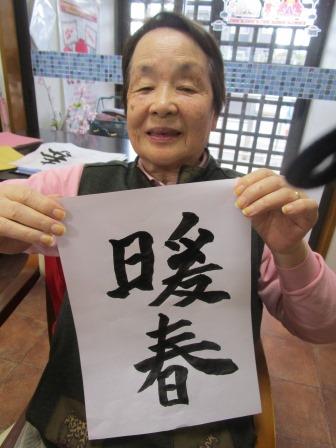 午後はコーラスとお習字でした。お上手な方が多く、今日もすばらしい作品ができました。上手に書けたので、壁に貼っています。