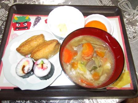 午前中は、恵方巻と稲荷ずし、豚汁を