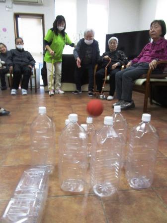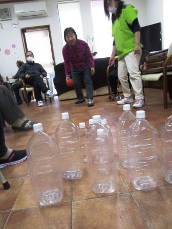 午後はペットボトルを使ってボーリングを♪