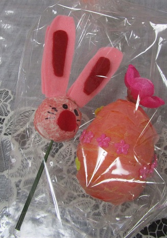 手工芸ではイースターにちなみ ウサギとタマゴにデコレーションをしました。
