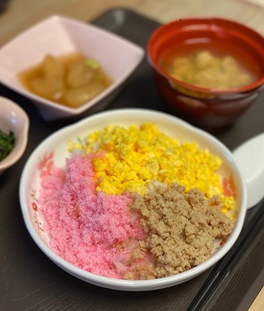 ピンクの桜でんぶに黄色のたまご