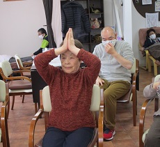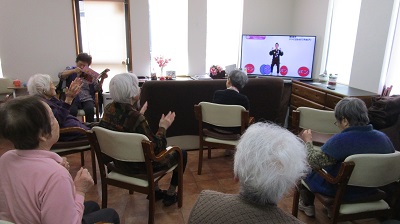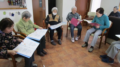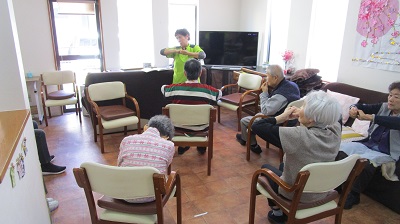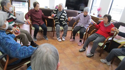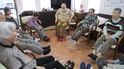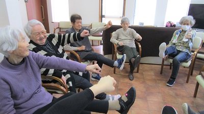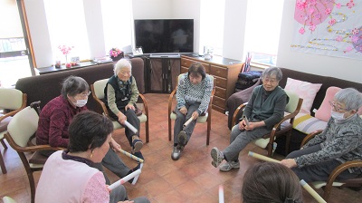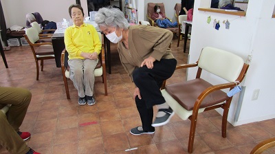 ボールストレッチ、イス体操ともに職員をお手本にしながらしっかり身体を動かされました。