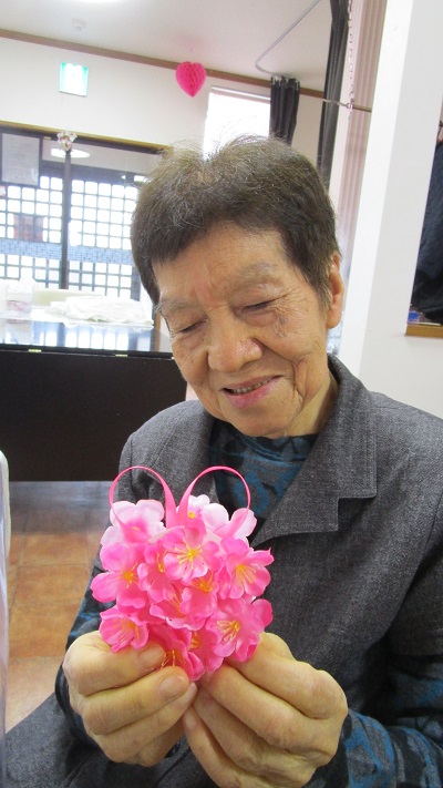折り紙教室では桜の花を折りました。