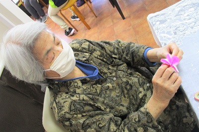午後は全身ストレッチと折り紙