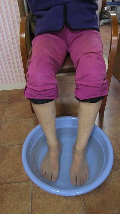 また足浴では、ソファーでゆっくりして頂きながら足を温めておられました。