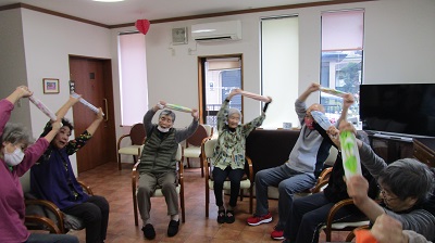 センターでは皆さん元気に体操やレクリエーションに参加されました。
