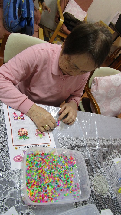午後の太極拳では、DVDのお手本に合わせてゆっくり身体を動かし、アイロンビーズでは集中し1つの作成を作っておられました♪