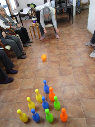 午前中はボーリングと回想法。