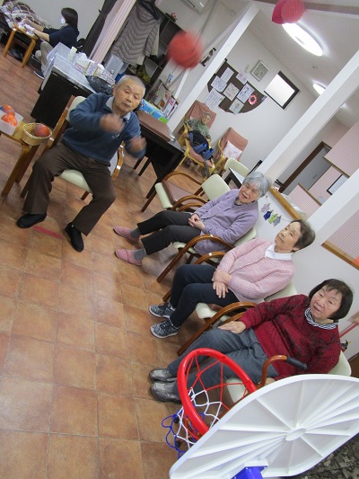 午前のレクでは、バスケットボール 10投球し点数を競い合いました。