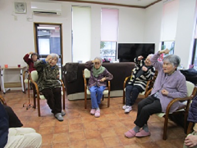 午後のレクでは、全身ストレッチ 身体をしっかりと伸ばす運動をしました。