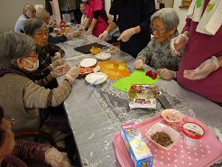 皆で「そこにクリームが足りないわ」「果物そこに乗せて」