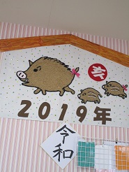 一年間慣れ親しんだ イノシシの掲示とも あと2日で
