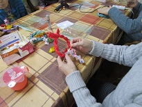 ご自分のお好きな色と飾りを選び、少し細かい作業に悪戦苦闘の末、とてもカラフルで華やかな飾りができました!ご自宅の片隅にでも飾って頂ければと思います。