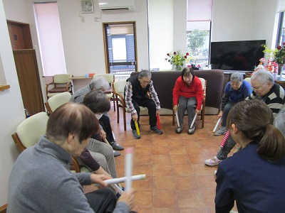 また午後からは棒体操を行い、リズムや声に合わせながら身体を動かされました!!