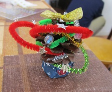 今日は松ぼっくりを使ったミニツリーを作りました。