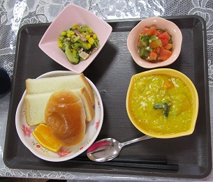 カボチャのスープにモンブラン 「美味しい〜♪」と