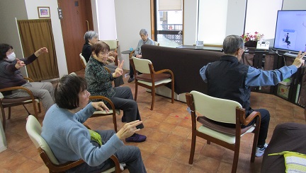 本日の午前のレクはイス体操DVD見ながら行いました♪