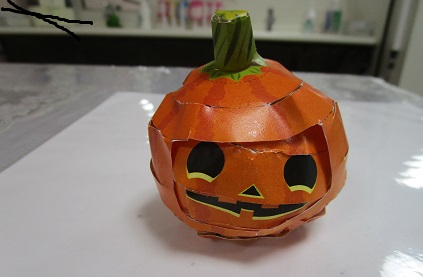 ペーパークラフトで細かい作業を経てハロウィンの置物が