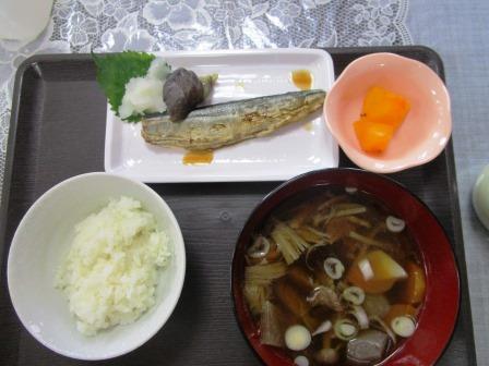 昼食はお客様に協力して頂いた芋煮、秋刀魚を
