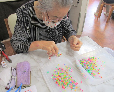 別のテーブルではアイロンビーズに取り組むお客様も。