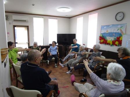 リズム体操では365歩のマーチに合わせて手や足を動かしました。