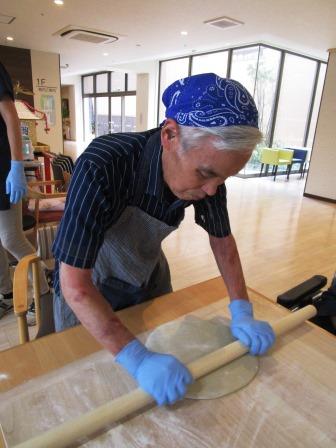 蕎麦担当の方は一生懸命に包丁を持って蕎麦を切りました。