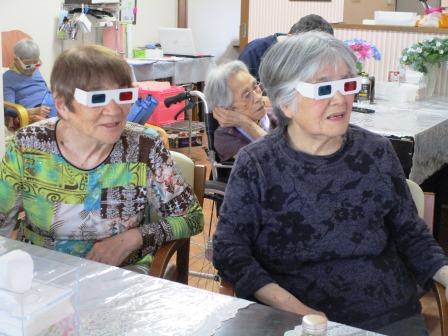 午後はボランティアさんによる3D鑑賞会と脳トレ&懐かしの歌謡曲♪