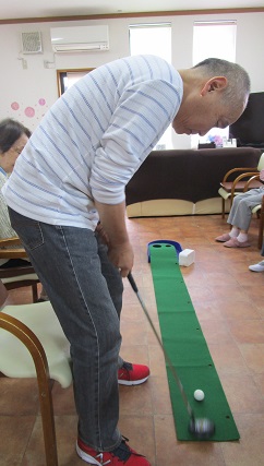 本日のレクは、パターゴルフ・ペーパークラフト・棒体操・ジグソーパズル