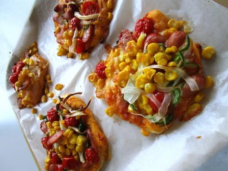 ・トマトソースたっぷりのピザ